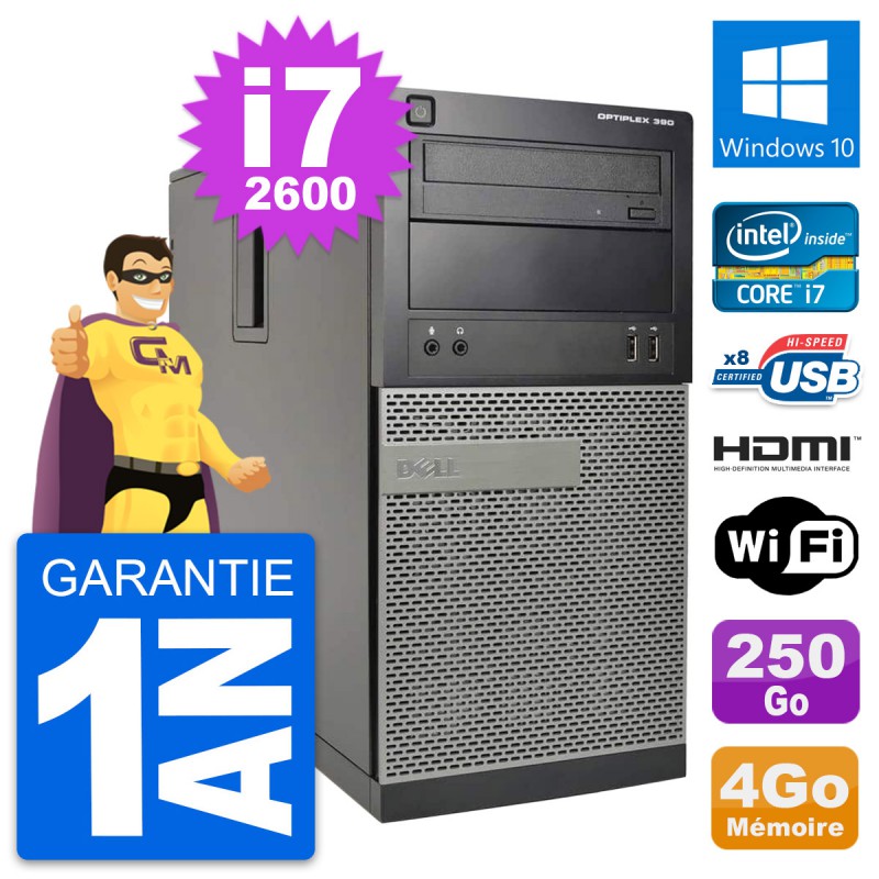 PC Tour Dell OptiPlex 390 MT i7-2600 RAM 4Go Disque 250Go HDMI Windows 10 Wifi