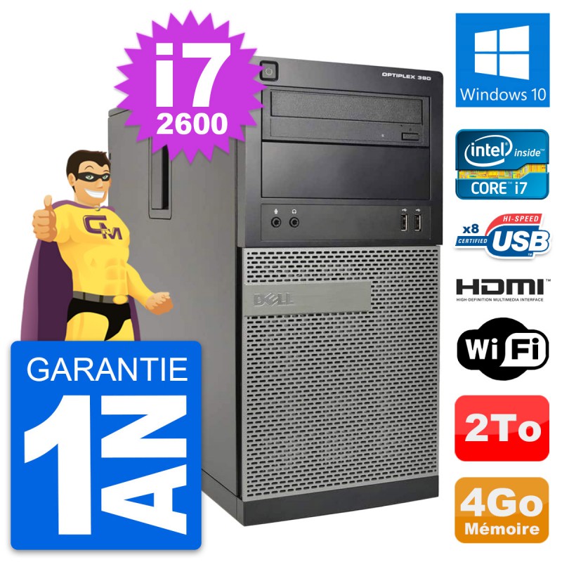 PC Tour Dell OptiPlex 390 MT i7-2600 RAM 4Go Disque Dur 2To HDMI Windows 10 Wifi