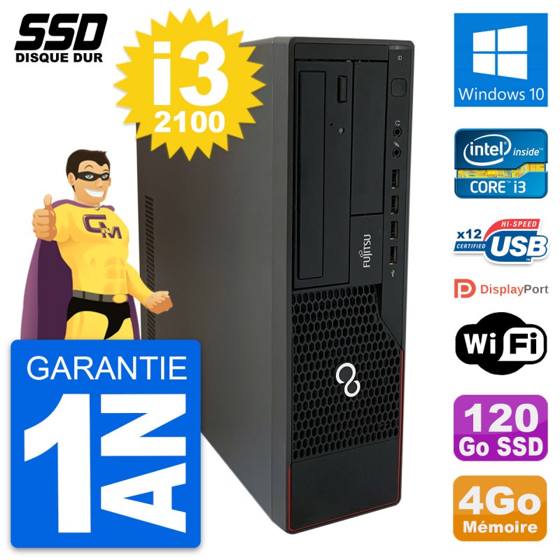 PC Fujitsu Esprimo E910 DT - Intel Core i3-2100 3.1 Ghz (3 Mo) - 4 Go DDR3 - Disque Dur SSD 120 Go - Graveur DVD - Clef Wifi USB - Windows 10 - Garantie 1 an.