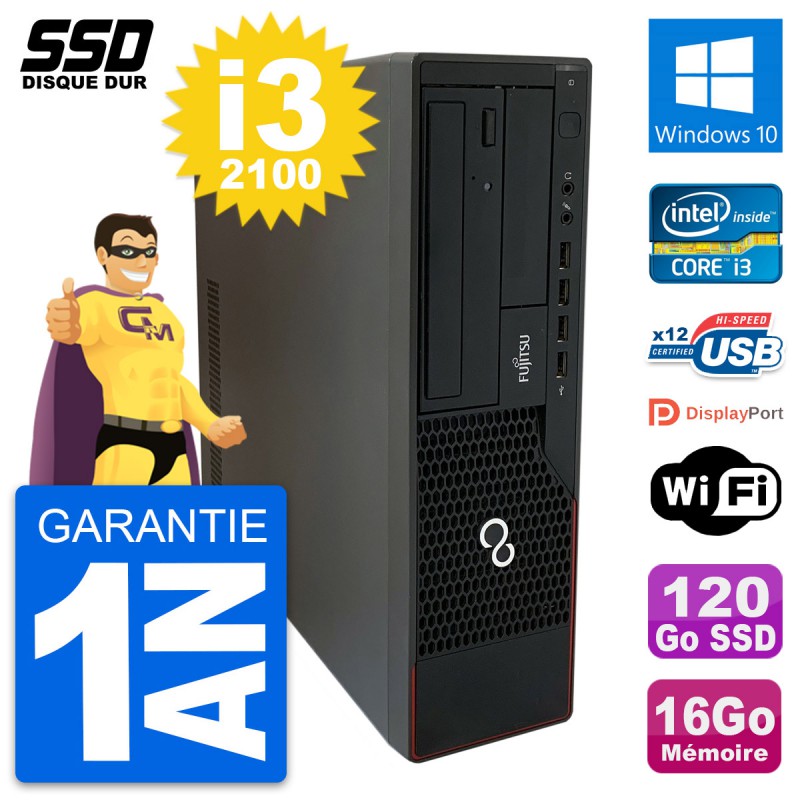 PC Fujitsu Esprimo E910 DT - Intel Core i3-2100 3.1 Ghz (3 Mo) - 16 Go DDR3 - Disque Dur SSD 120 Go - Graveur DVD - Clef Wifi USB - Windows 10 - Garantie 1 an.