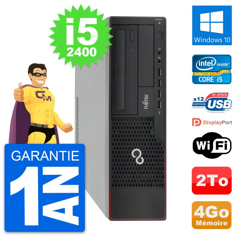 PC Fujitsu Esprimo E910 DT - Intel Core i5-2400 3.1 Ghz (6 Mo) - 4 Go DDR3 - Disque Dur 3,5" 2 To - Graveur DVD - Clef Wifi USB - Windows 10 - Garantie 1 an.