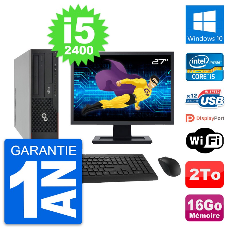 PC Fujitsu E910 DT - Intel Core i5-2400 3.1 Ghz (6 Mo) - 16 Go DDR3 - Disque Dur 3,5" 2 To - Graveur DVD - Clef Wifi USB - Windows 10 - Livré avec Ecran 27" + clavier + souris (Marques et modèles variables) - Garantie 1 an.