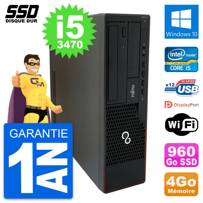 PC Fujitsu Esprimo E910 DT Intel Core i5-3470 RAM 4Go SSD 960Go Windows 10 Wifi