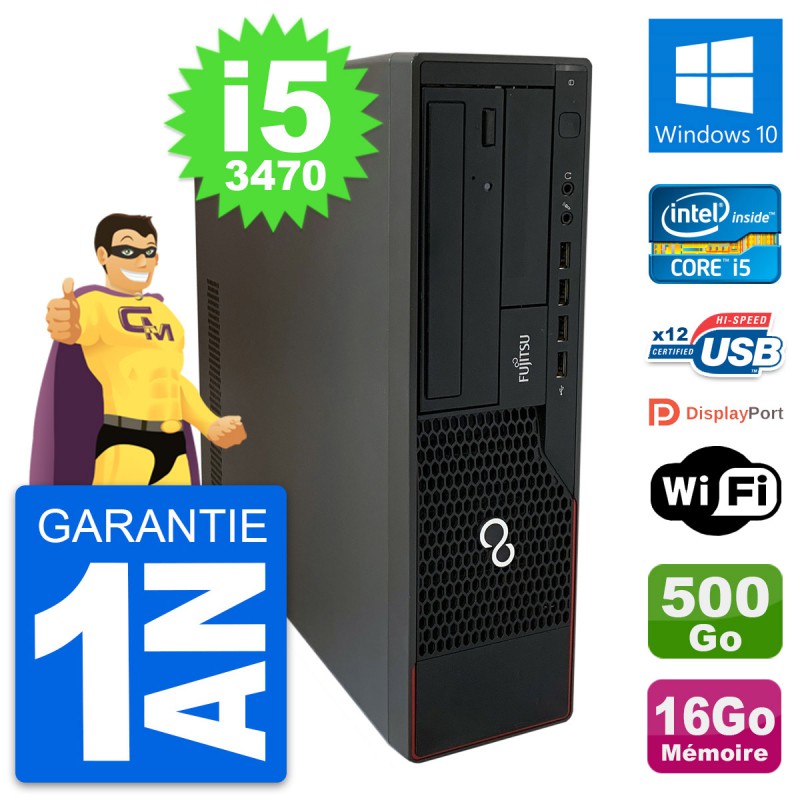 PC Fujitsu Esprimo E910 DT - Intel Core i5-3470 3.2 Ghz (6 Mo) - 16 Go DDR3 - Disque Dur 3,5" 500 Go - Graveur DVD - Clef Wifi USB - Windows 10 - Garantie 1 an.