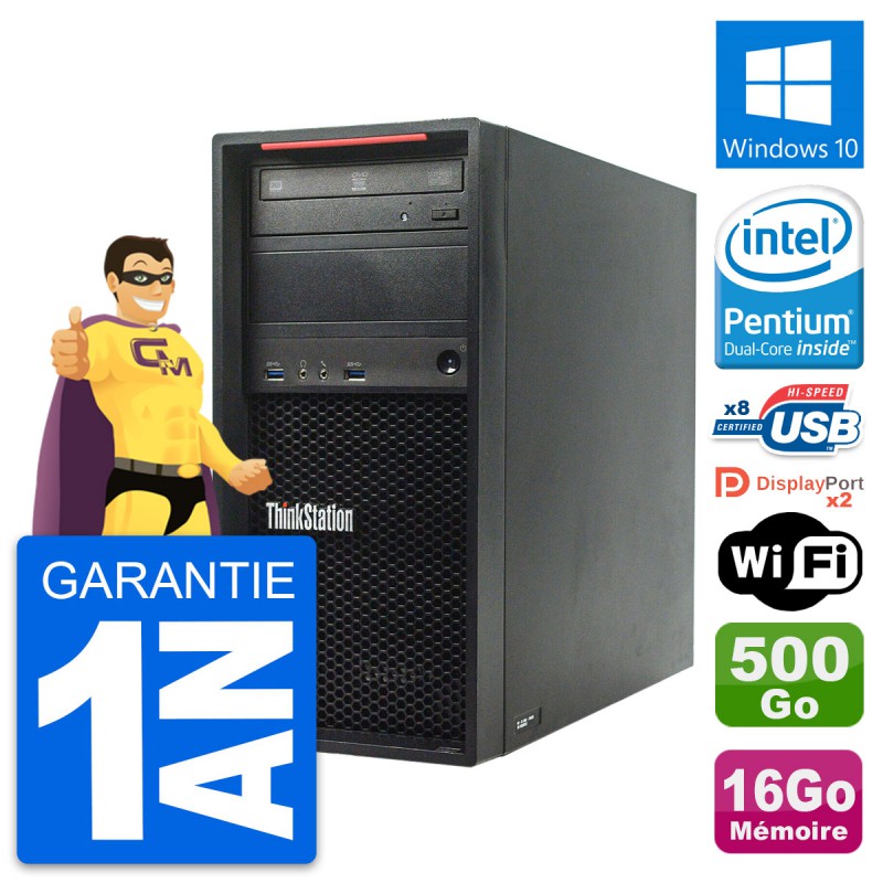 PC Tour Lenovo ThinkStation P300 MT - Intel Pentium G3220 3.0 Ghz (3 Mo) - 16 Go DDR3 - Disque Dur 3,5" 500 Go - Graveur DVD - Clef Wifi USB - Windows 10 - Garantie 1 an.