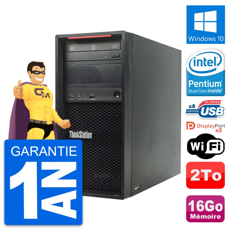 PC Tour Lenovo ThinkStation P300 MT - Intel Pentium G3220 3.0 Ghz (3 Mo) - 16 Go DDR3 - Disque Dur 3,5" 2 To - Graveur DVD - Clef Wifi USB - Windows 10 - Garantie 1 an.
