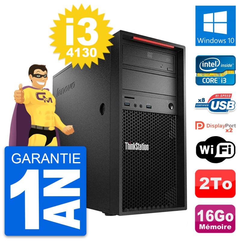PC Tour Lenovo ThinkStation P300 MT - Intel Core i3-4130 3.4 Ghz (3 Mo) - 16 Go DDR3 - Disque Dur 3,5" 2 To - Graveur DVD - Clef Wifi USB - Windows 10 - Garantie 1 an.