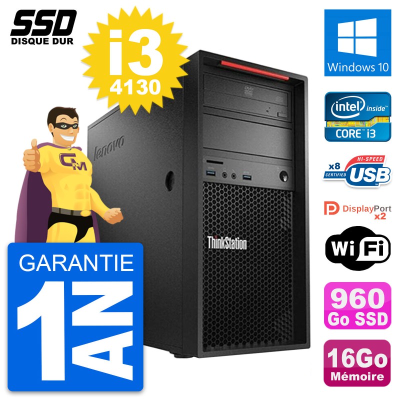 PC Tour Lenovo ThinkStation P300 MT - Intel Core i3-4130 3.4 Ghz (3 Mo) - 16 Go DDR3 - Disque Dur SSD 960 Go - Graveur DVD - Clef Wifi USB - Windows 10 - Garantie 1 an.