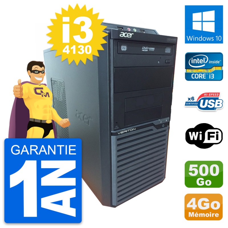 PC Tour Acer Veriton M2630G - Intel Core i3-4130 3.4 Ghz (3 Mo) - 4 Go DDR3 - Disque Dur 3,5" 500 Go - Graveur DVD - Clef Wifi USB - Windows 10 - Garantie 1 an.