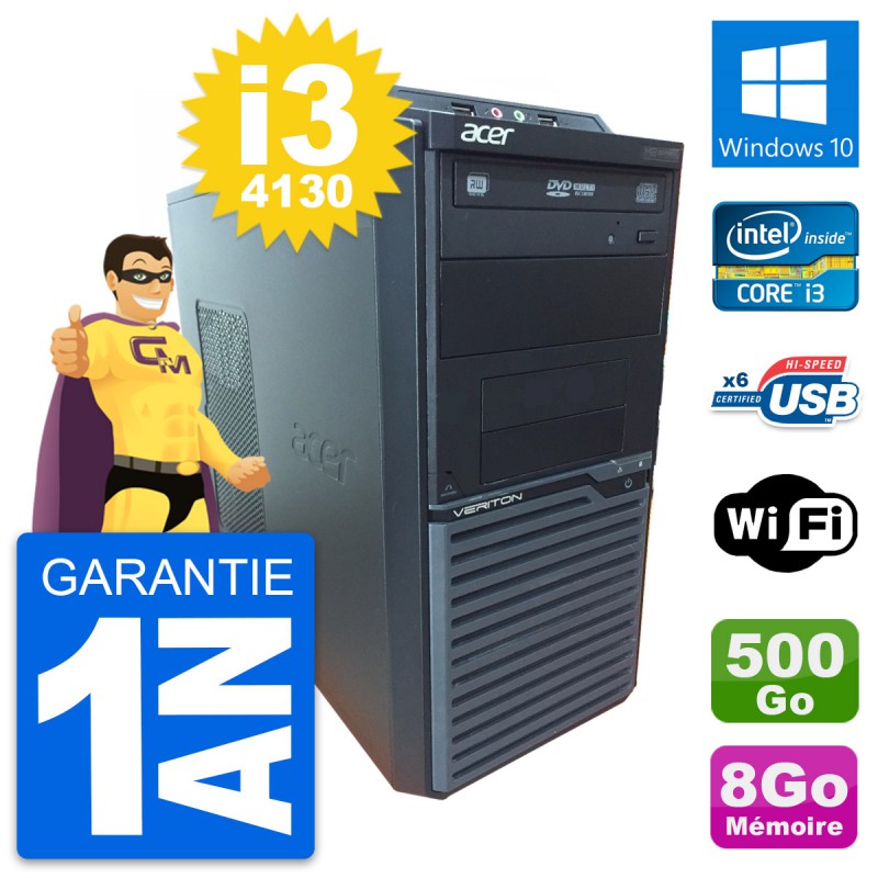 PC Tour Acer Veriton M2630G - Intel Core i3-4130 3.4 Ghz (3 Mo) - 8 Go DDR3 - Disque Dur 3,5" 500 Go - Graveur DVD - Clef Wifi USB - Windows 10 - Garantie 1 an.