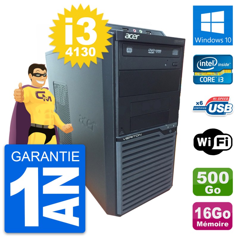 PC Tour Acer Veriton M2630G - Intel Core i3-4130 3.4 Ghz (3 Mo) - 16 Go DDR3 - Disque Dur 3,5" 500 Go - Graveur DVD - Clef Wifi USB - Windows 10 - Garantie 1 an.