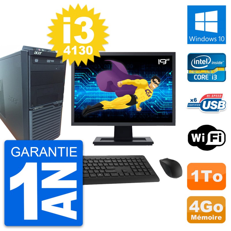 PC Tour Acer M2630G Ecran 19" Intel i3-4130 RAM 4Go Disque 1To Windows 10 Wifi