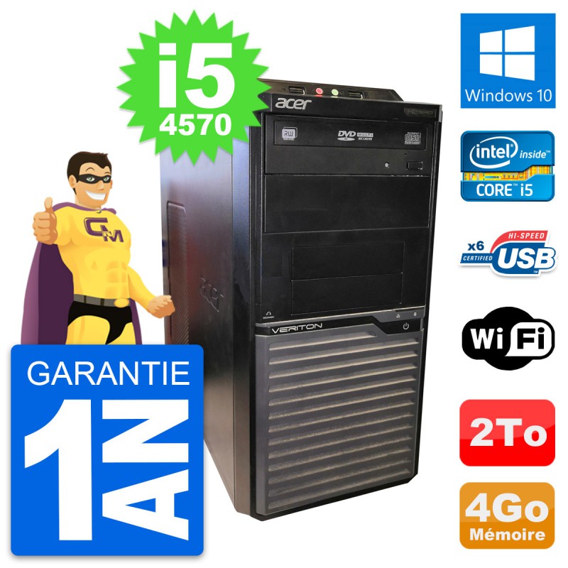 PC Tour Acer Veriton M2630G - Intel Core i5-4570 3.2 Ghz (6 Mo) - 4 Go DDR3 - Disque Dur 3,5" 2 To - Graveur DVD - Clef Wifi USB - Windows 10 - Garantie 1 an.