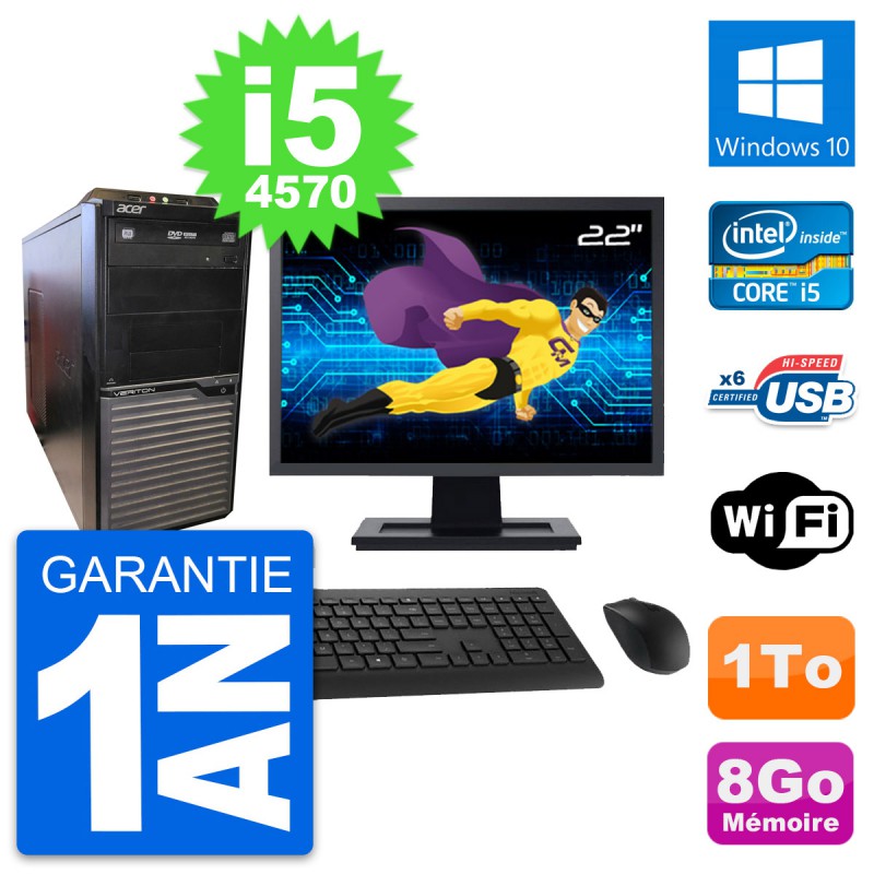 PC Tour Acer M2630G Ecran 22" Intel i5-4570 RAM 8Go Disque Dur 1To Windows 10 Wifi