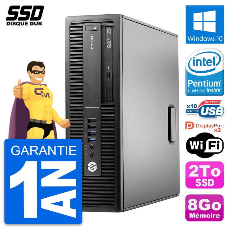 PC HP EliteDesk 800 G2 SFF - Intel Pentium Dual-Core G4400 3.3 Ghz (3 Mo) - 8 Go DDR4 - Disque Dur SSD 2 To - Graveur DVD - Clef Wifi USB - Windows 10 - Garantie 1 an.