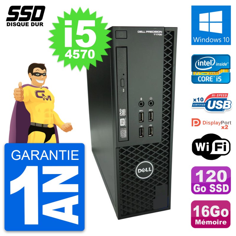 PC Dell Precision T1700 SFF (Slim) - Intel Core i5-4570 3.2 Ghz (6 Mo) - 16 Go DDR3 - SSD 120 Go - Graveur DVD - Clef Wifi USB - Windows 10 - Garantie 1 an.