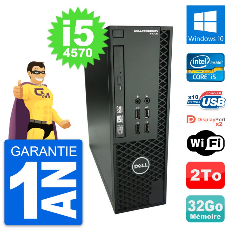 PC Dell Precision T1700 SFF (Slim) - Intel Core i5-4570 3.2 Ghz (6 Mo) - 32 Go DDR3 - Disque Dur 3,5" 2 To - Graveur DVD - Clef Wifi USB - Windows 10 - Garantie 1 an.