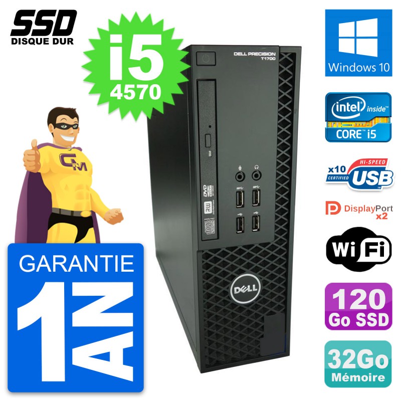 PC Dell Precision T1700 SFF (Slim) - Intel Core i5-4570 3.2 Ghz (6 Mo) - 32 Go DDR3 - SSD 120 Go - Graveur DVD - Clef Wifi USB - Windows 10 - Garantie 1 an.