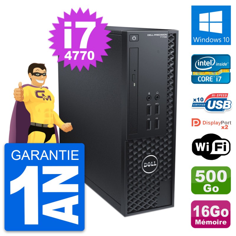 PC Dell Precision T1700 SFF (Slim) - Intel Core i7-4770 3.4 Ghz (8 Mo) - 16 Go DDR3 - Disque Dur 3,5" 500 Go - Graveur DVD - Clef Wifi USB - Windows 10 - Garantie 1 an.