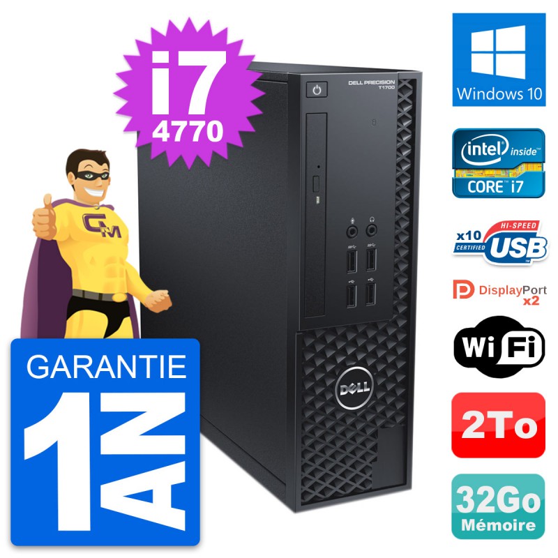 PC Dell Precision T1700 SFF (Slim) - Intel Core i7-4770 3.4 Ghz (8 Mo) - 32 Go DDR3 - Disque Dur 3,5" 2 To - Graveur DVD - Clef Wifi USB - Windows 10 - Garantie 1 an.