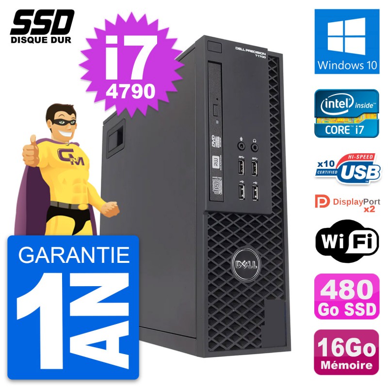 PC Dell Precision T1700 SFF (Slim) - Intel Core i7-4790 3.6 Ghz (8 Mo) - 16 Go DDR3 - SSD 480 Go - Graveur DVD - Clef Wifi USB - Windows 10 - Garantie 1 an.