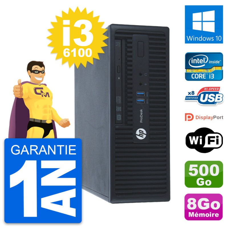 PC HP ProDesk 400 G3 SFF Intel i3-6100 RAM 8Go Disque Dur 500Go Windows 10 Wifi