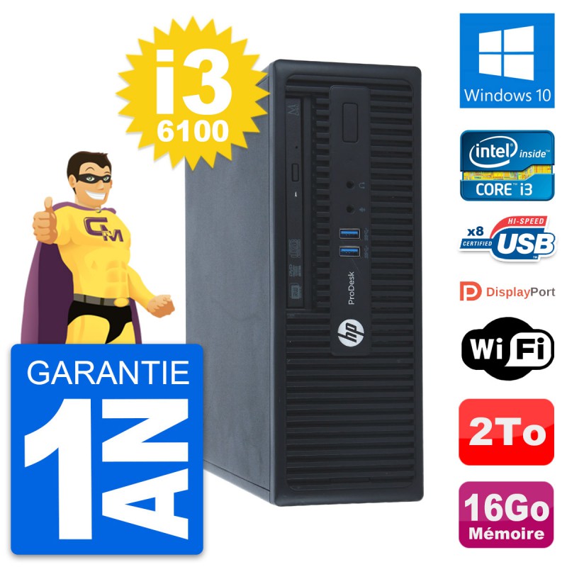 PC HP ProDesk 400 G3 SFF Intel Core i3-6100 RAM 16Go Disque 2To Windows 10 Wifi