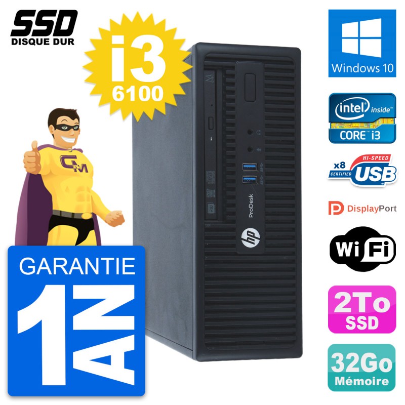 PC HP ProDesk 400 G3 SFF Intel Core i3-6100 RAM 32Go SSD 2To Windows 10 Wifi