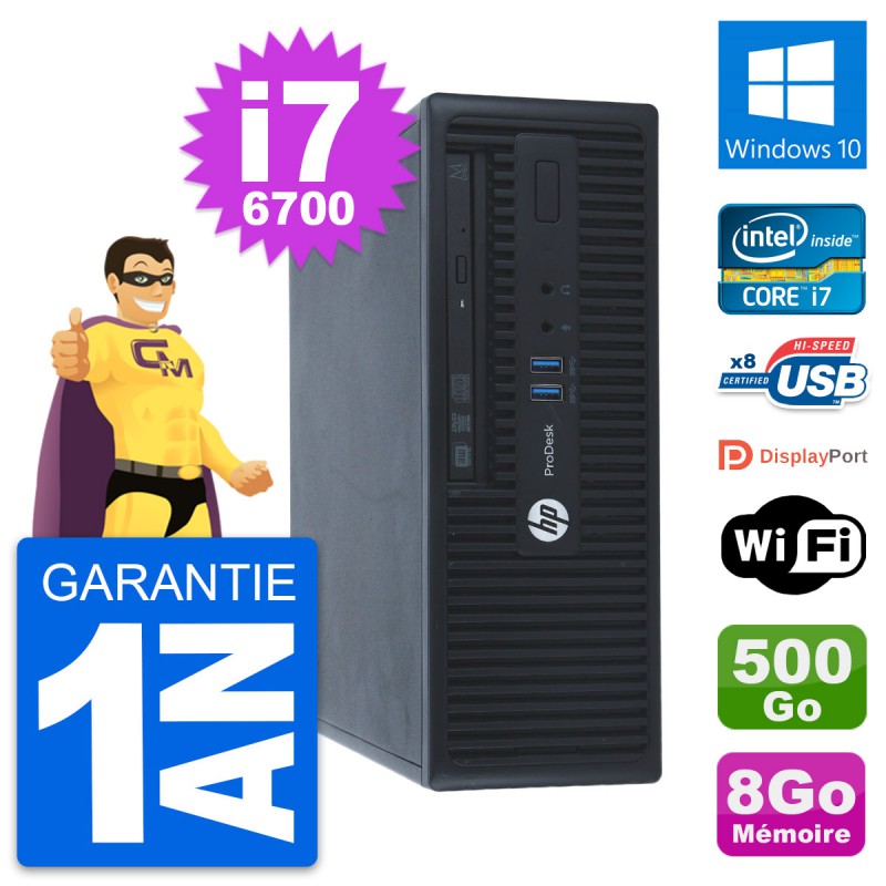 PC HP ProDesk 400 G3 SFF Intel i7-6700 RAM 8Go Disque Dur 500Go Windows 10 Wifi