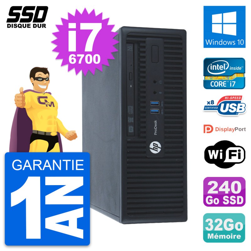 PC HP ProDesk 400 G3 SFF Intel Core i7-6700 RAM 32Go SSD 240Go Windows 10 Wifi