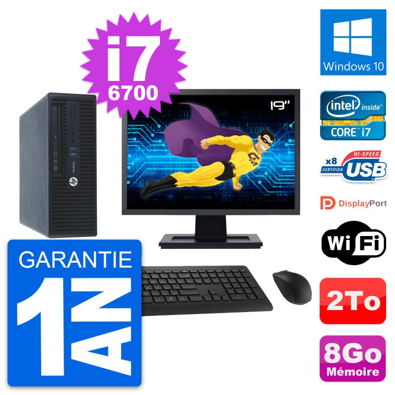 PC HP ProDesk 400 G3 SFF Ecran 19" i7-6700 RAM 8Go Disque 2To Windows 10 Wifi