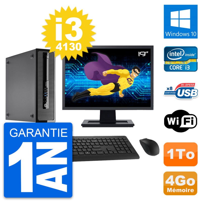 PC HP ProDesk 400 G1 SFF Ecran 19" i3-4130 RAM 4Go Disque 1To Windows 10 Wifi