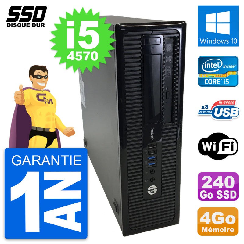 PC HP ProDesk 400 G1 SFF Intel Core i5-4570 RAM 4Go SSD 240Go Windows 10 Wifi