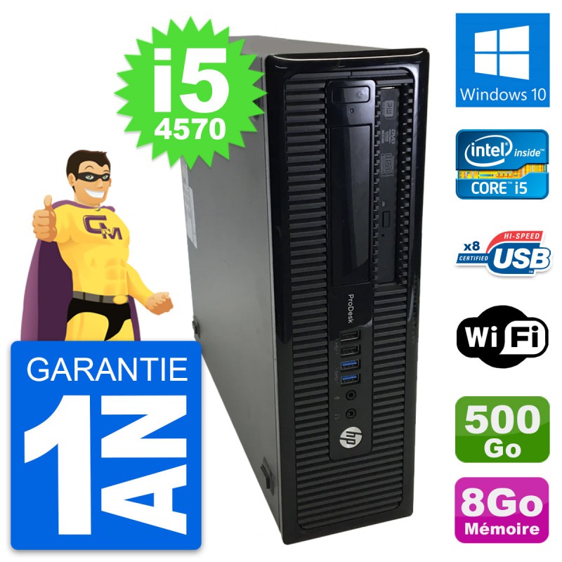 PC HP ProDesk 400 G1 SFF (Slim) - Intel Core i5-4570 3.2 Ghz (6 Mo) - 8 Go DDR3 - Disque Dur 3,5" 500 Go - Graveur DVD - Clef Wifi USB - Windows 10 - Garantie 1 an.