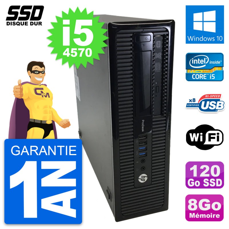 PC HP ProDesk 400 G1 SFF Intel Core i5-4570 RAM 8Go SSD 120Go Windows 10 Wifi