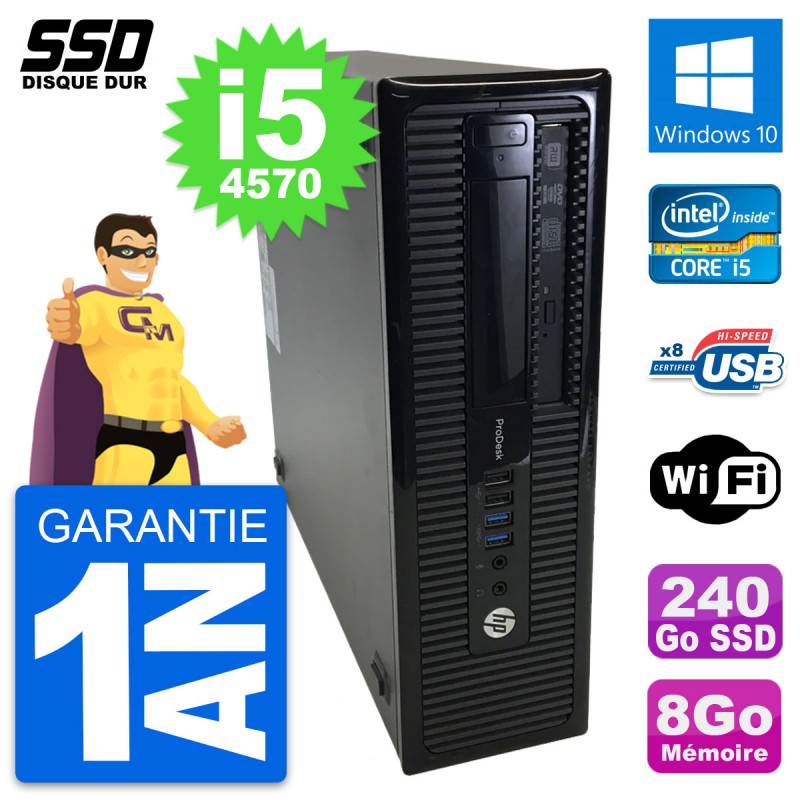 PC HP ProDesk 400 G1 SFF Intel Core i5-4570 RAM 8Go SSD 240Go Windows 10 Wifi