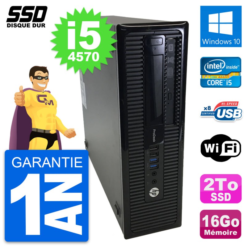 PC HP ProDesk 400 G1 SFF Intel Core i5-4570 RAM 16Go SSD 2To Windows 10 Wifi