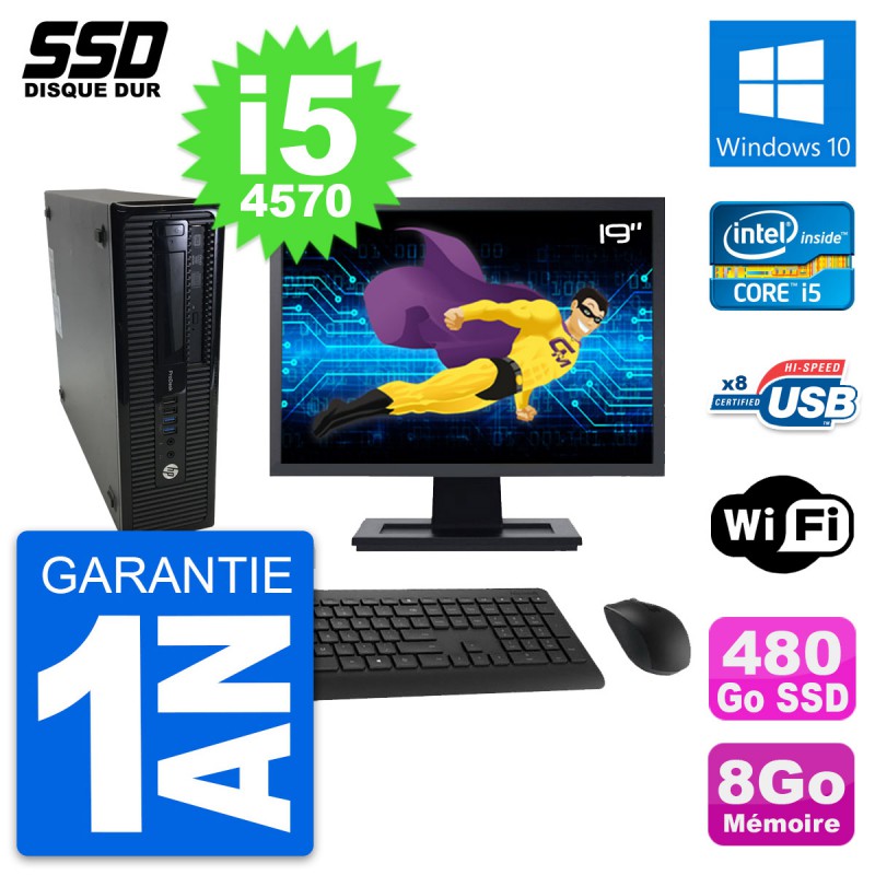PC HP ProDesk 400 G1 SFF Ecran 19" i5-4570 RAM 8Go SSD 480Go Windows 10 Wifi