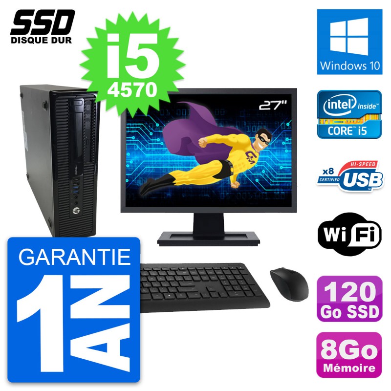 PC HP ProDesk 400 G1 SFF Ecran 27" i5-4570 RAM 8Go SSD 120Go Windows 10 Wifi