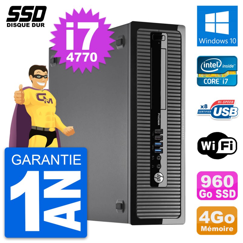 PC HP ProDesk 400 G1 SFF Intel Core i7-4770 RAM 4Go SSD 960Go Windows 10 Wifi