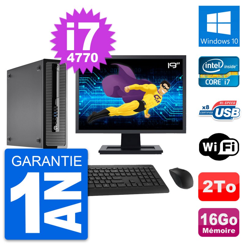 PC HP ProDesk 400 G1 SFF Ecran 19" i7-4770 RAM 16Go Disque 2To Windows 10 Wifi