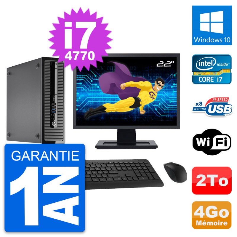 PC HP ProDesk 400 G1 SFF Ecran 22" i7-4770 RAM 4Go Disque 2To Windows 10 Wifi