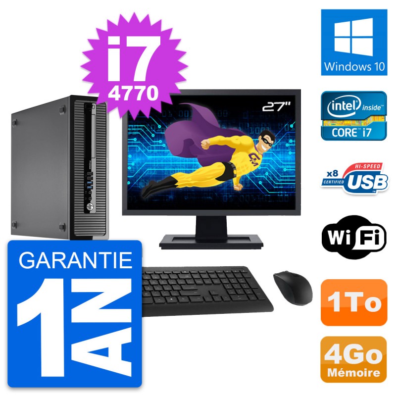 PC HP ProDesk 400 G1 SFF Ecran 27" i7-4770 RAM 4Go Disque 1To Windows 10 Wifi