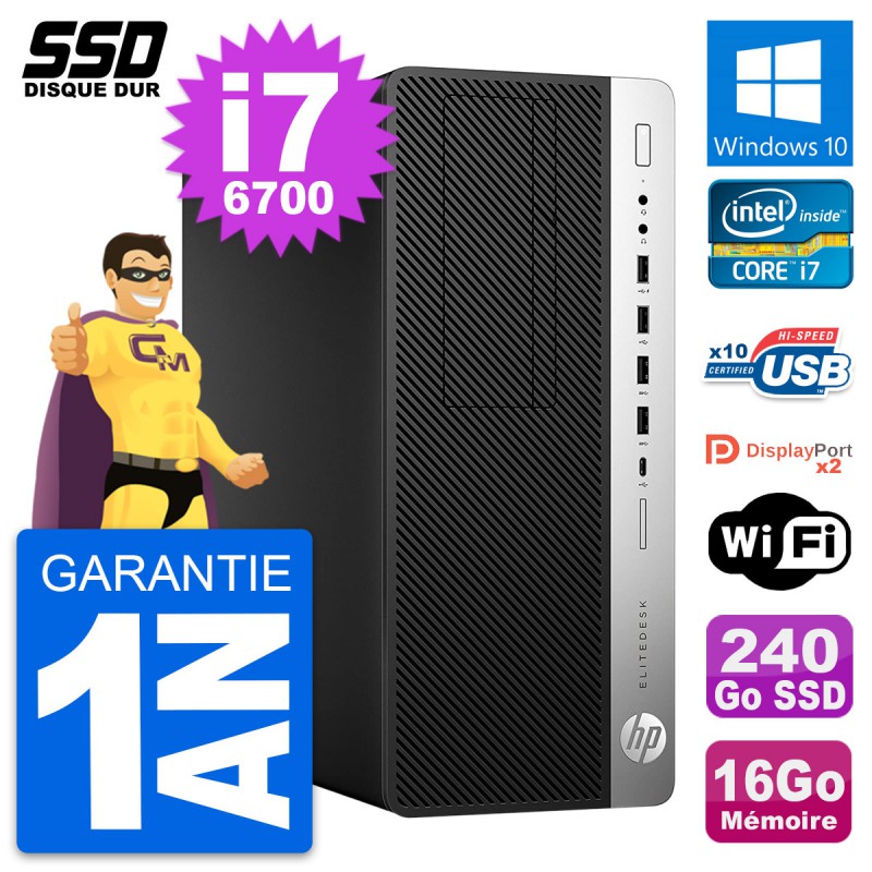 PC Tour HP EliteDesk 800 G3 MT - Intel Core i7-6700 3.4 Ghz (8 Mo) - 16 Go DDR4 - SSD 240 Go - Clef Wifi USB - Windows 10 - Garantie 1 an.