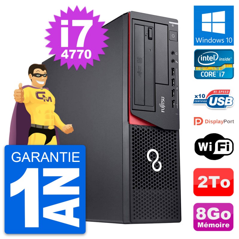 PC Fujitsu Esprimo E920 DT - Intel Core i7-4770 3.4 Ghz (8 Mo) - 8 Go DDR3 - Disque Dur 3,5" 2 To - Graveur DVD - Clef Wifi USB - Windows 10 - Garantie 1 an.