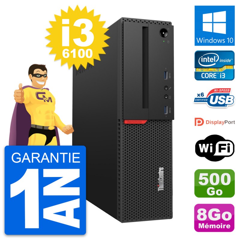PC Lenovo ThinkCentre M700 SFF Core i3-6100 RAM 8Go Disque 500Go Windows 10 Wifi