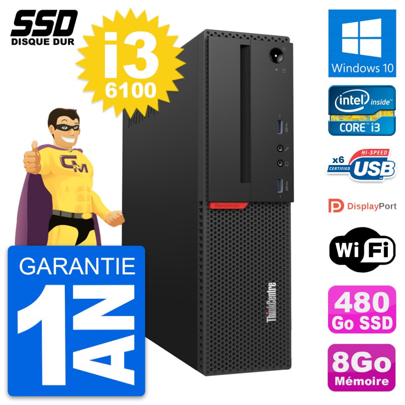 PC Lenovo ThinkCentre M700 SFF Intel i3-6100 RAM 8Go SSD 480Go Windows 10 Wifi