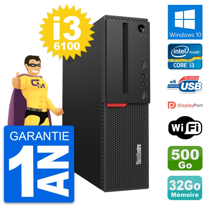 PC Lenovo ThinkCentre M700 SFF i3-6100 RAM 32Go Disque 500Go Windows 10 Wifi