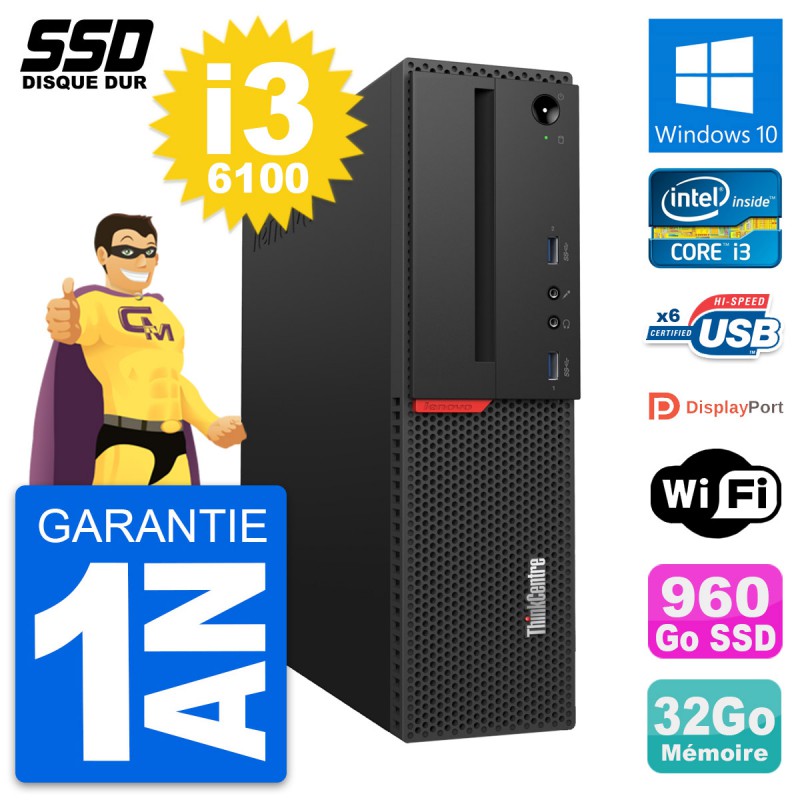 PC Lenovo ThinkCentre M700 SFF Intel i3-6100 RAM 32Go SSD 960Go Windows 10 Wifi