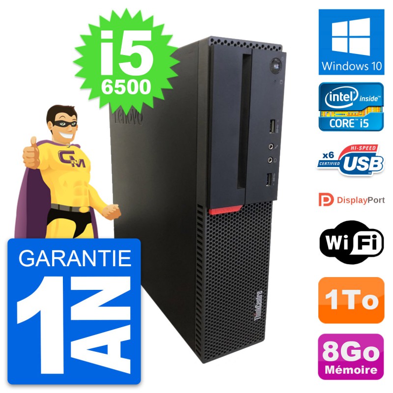 PC Lenovo ThinkCentre M700 SFF - Intel Core i5-6500 3.2 Ghz (6 Mo) - 8 Go DDR4 - Disque Dur 3,5" 1 To - Clef Wifi USB - Windows 10 - Garantie 1 an.